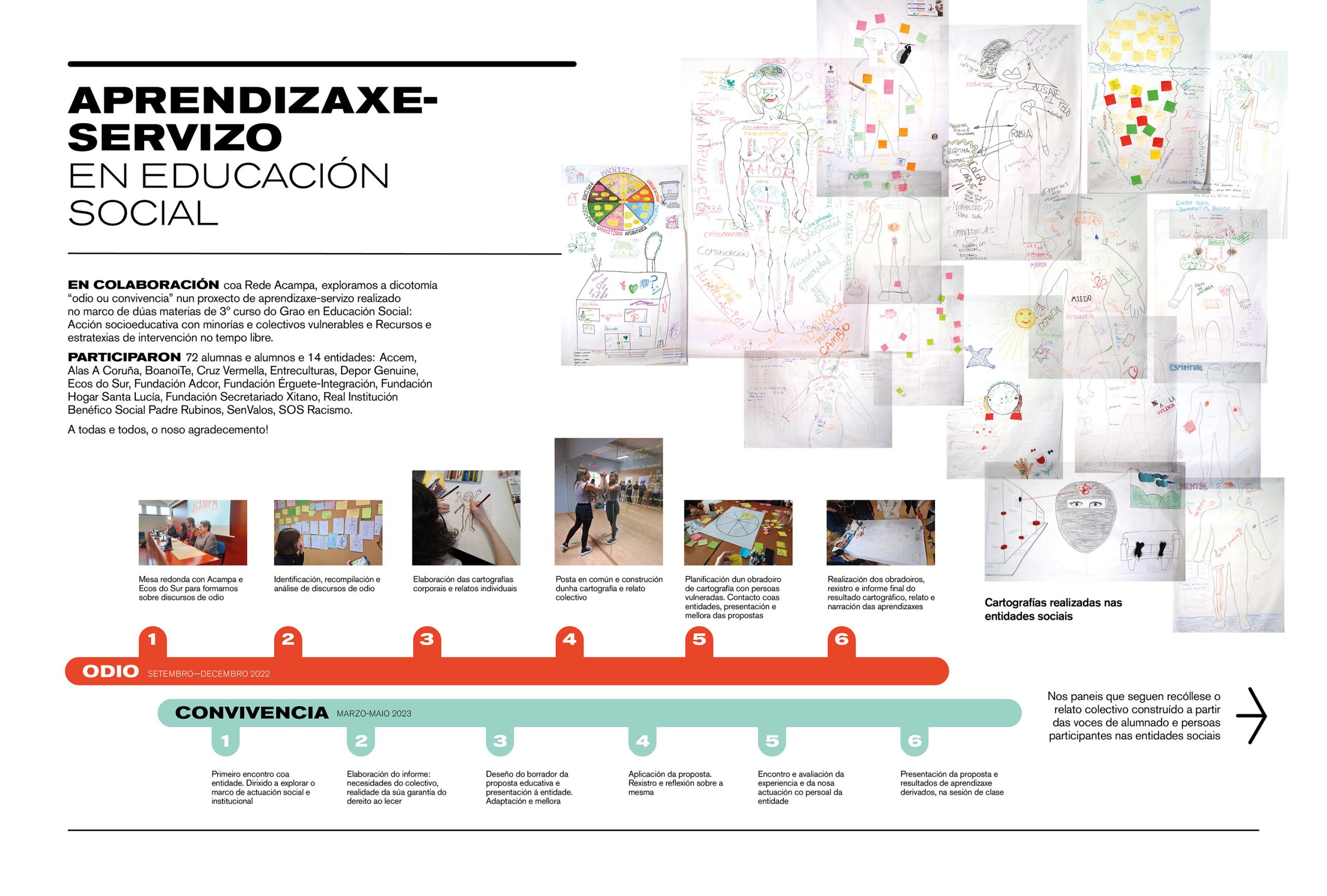 Clica nas seguintes imaxes para ver o relato colectivo construído a partir das cartografías individuais do alumnado e das cartografías grupais realizadas con colectivos vulnerados